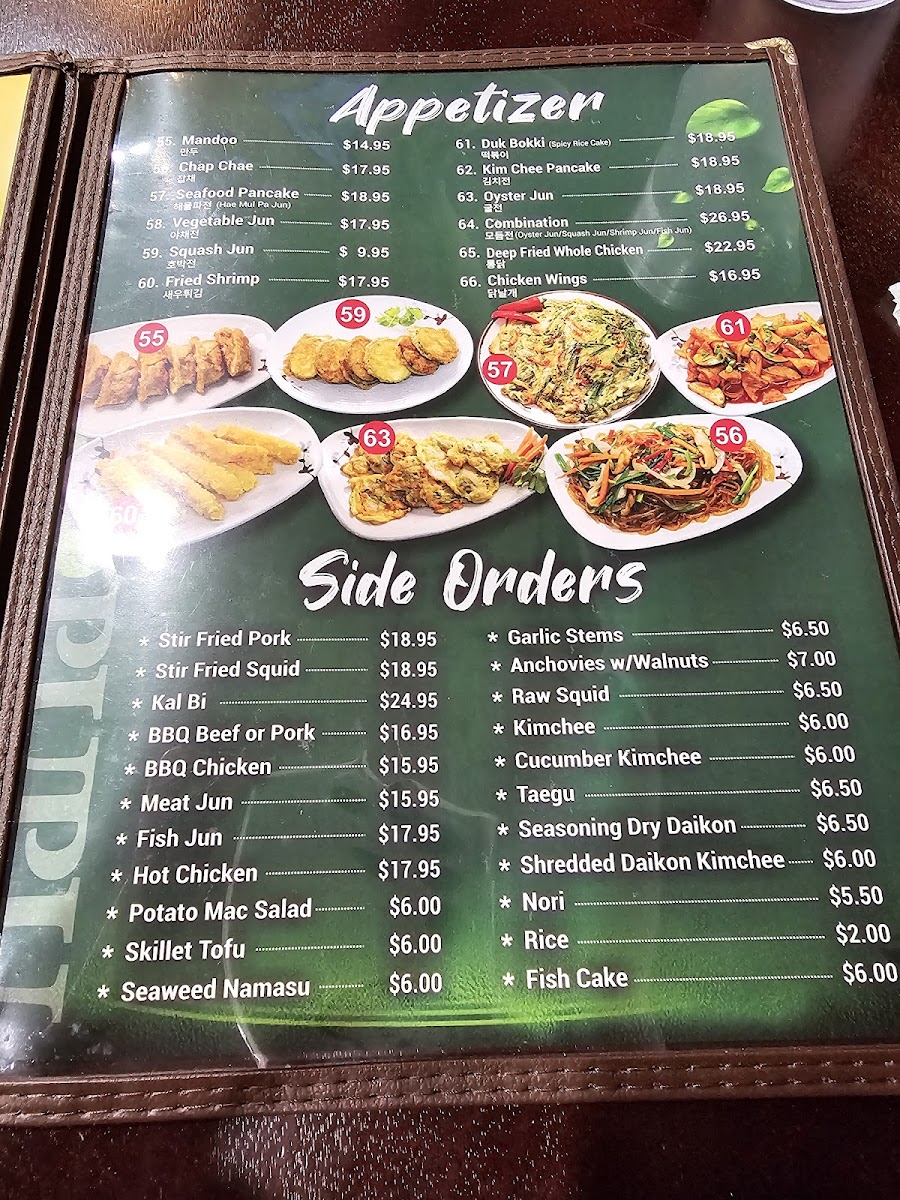 The heavenly Fish Jun or Mandoo Plate are sure to satisfy, with the latter offering a generous helping of large, plump dumplings that are crispy on the outside and filled with savory goodness, delivering an authentic Korean culinary experience. Many customers rave about the portion sizes, often noting that one plate can be perfect for sharing, making it a great choice for family-style dining.